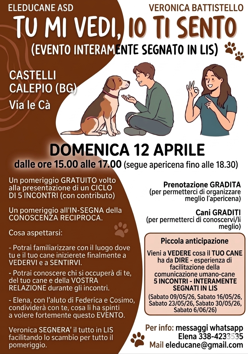 Ulteriori informazioniTU MI VEDI, IO TI SENTO (EVENTO INTERAMENTE SEGNATO IN...